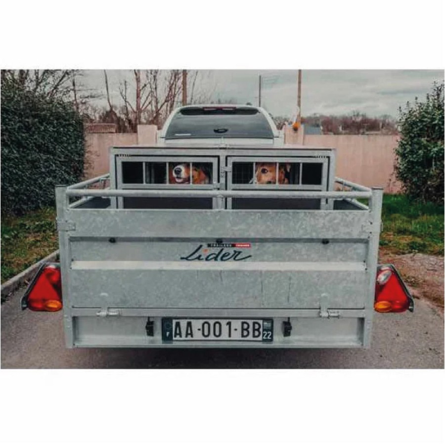 Le modèle 2 box est adaptable sur les remorques Lider de longueur utile ≥ 1,35 m. Dimensions d'un box 126x46x70 cm. Dimensions extérieures 133x98x71 cm.